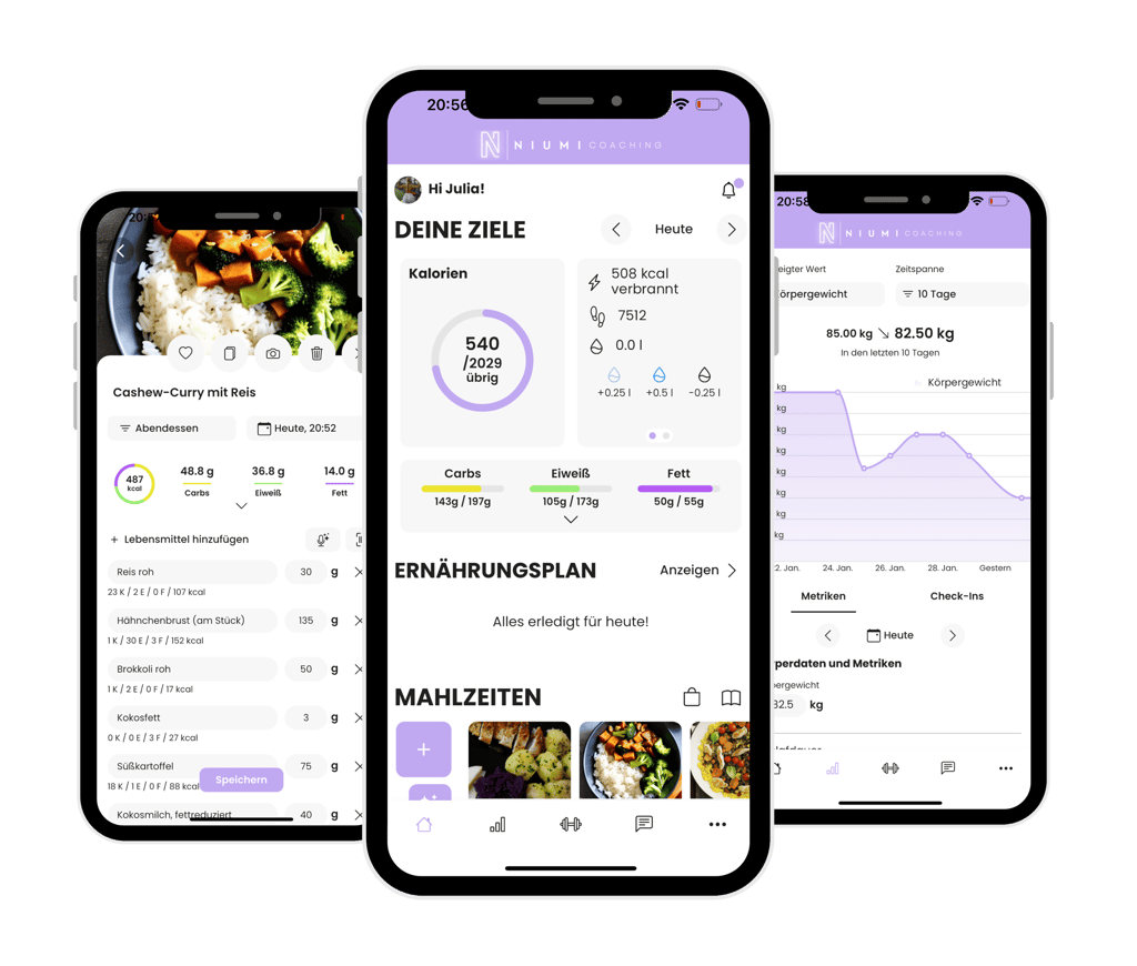 Um die NIUMI App ohne dazugehöriges 1 zu 1 Coaching nutzen zu können, benötigst du ein Abonnement. Du hast die Wahl zwischen dem Basic-Abo und dem Premium-Abo/Light Coaching: