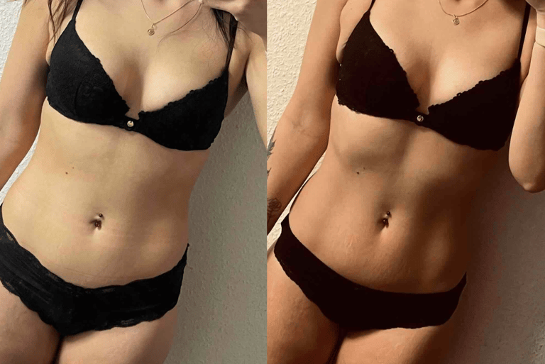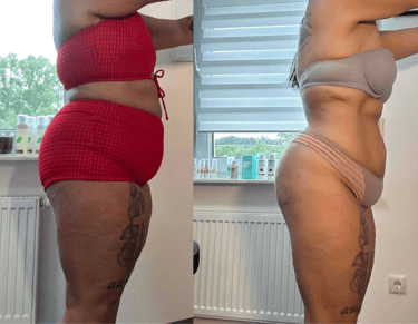 Das Ziel dieser Klientin war es, abzunehmen. Nicht mal 2 Monate waren vergangen und schon waren es 5kg und 14cm Bauchumfang weniger - was ein Unterschied, heftig! 🤩